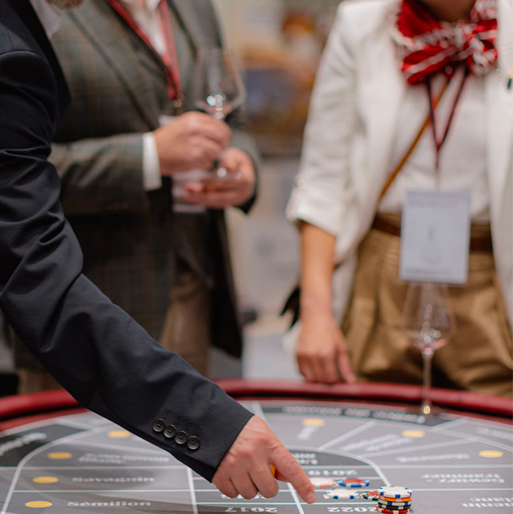 Wine Me® Casino se joue dans deux formats : assis pour une dégustation confortable, ou debout pour une ambiance dynamique et conviviale.