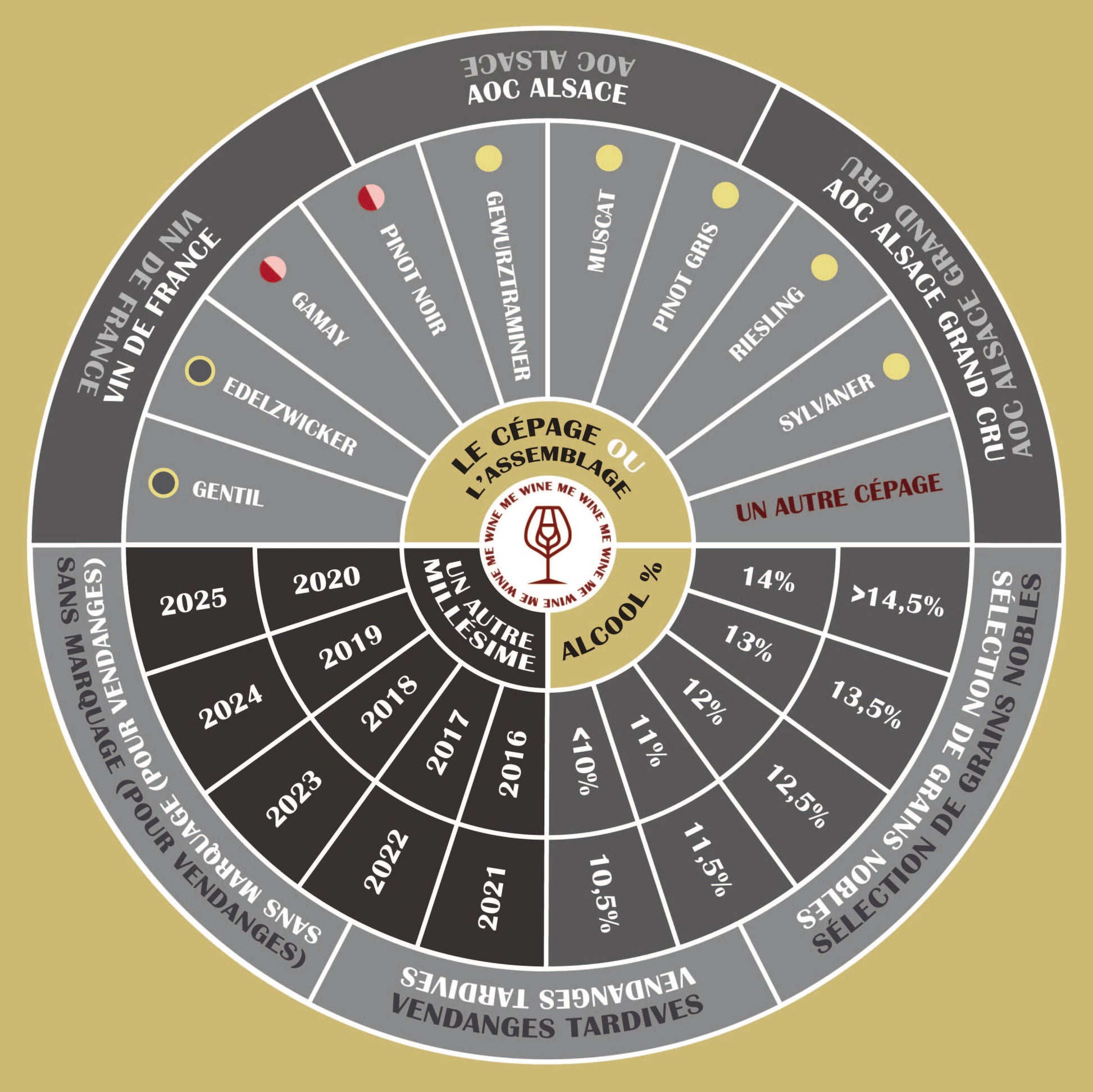 Conception: Doté d'une disposition unique, le set de table Wine Me est divisé en quatre parties. Principaux secteurs : Cépage, Sous-régions, Millésime (Année) et Degré d’alcool